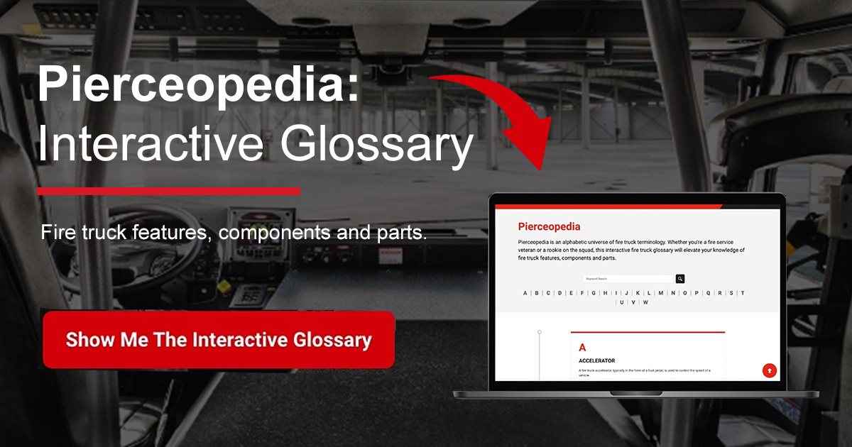 Siddons-Martin is excited to announce the launch of Pierceopedia, a new resource from Pierce MFG that provides a comprehensive overview of fire truck terminology. Pierceopedia is an alphabetic universe of fire truck terms, from “A” for aerial ladder to “Z” for zoning.